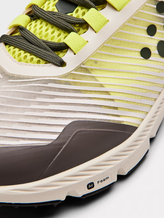 Ar Foam™ es un material de entresuela de marcha suave y versátil que ofrece un gran retorno de energía al tiempo que proporciona estabilidad y una marcha excepcionalmente suave. Esta espuma a base de EVA agrega un compuesto químico único para una desaceleración perfecta sin sacrificar la capacidad de aceleración con la punta del pie. Estable y suave son las principales características de esta versátil entresuela de espuma.